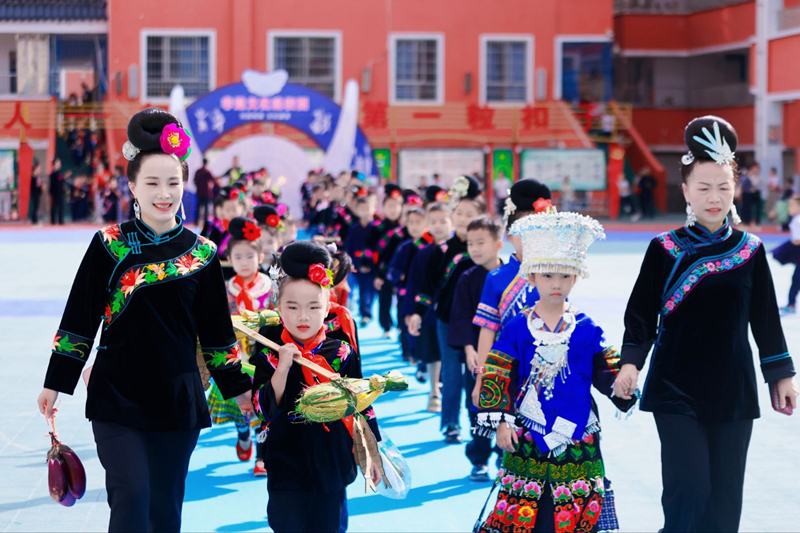 5年来,丹江小学将非遗融入教育教学,通过文艺汇演、体育竞赛、手工创作等形式,让一届又一届学生在轻松愉悦的氛围中动手做、开口唱、跟着学,近距离接触、学习非遗,既激发了学生学习的热情,又让他们在体验中感受到传统文化的温度。“苗绣体验、芦笙演奏、苗族歌谣学唱等与非遗相关的内容,都被巧妙地融入活动,不是生硬地教,而是让大家边玩边学。”雷山县丹江小学副校长张秀梅表示。(本报记者 王雪峰/文 雷山县丹江小学供图)